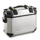 New Trekker Outback side-case, with aluminum structure and profiles. Available in two different sizes: 37 l. and 48 l. Equipped with the new Monokey® Cam-Side fitting system in die-cast aluminum and inserts in reinforced technopolymer.